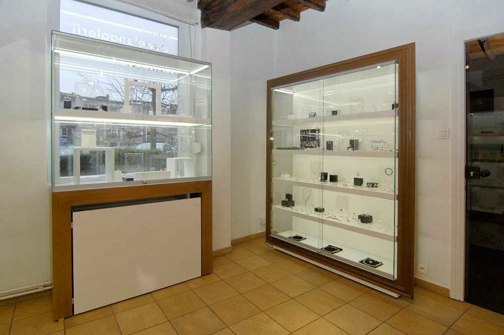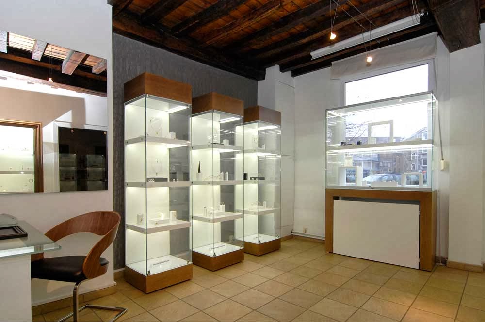 2011 wurden in Belgien bei einer Goldschmiedin mehrere Vitrinen angeliefert. Vor einiger Zeit bestellte sie eine Säule in die Mitte des Raumes, mit Schubladen.
